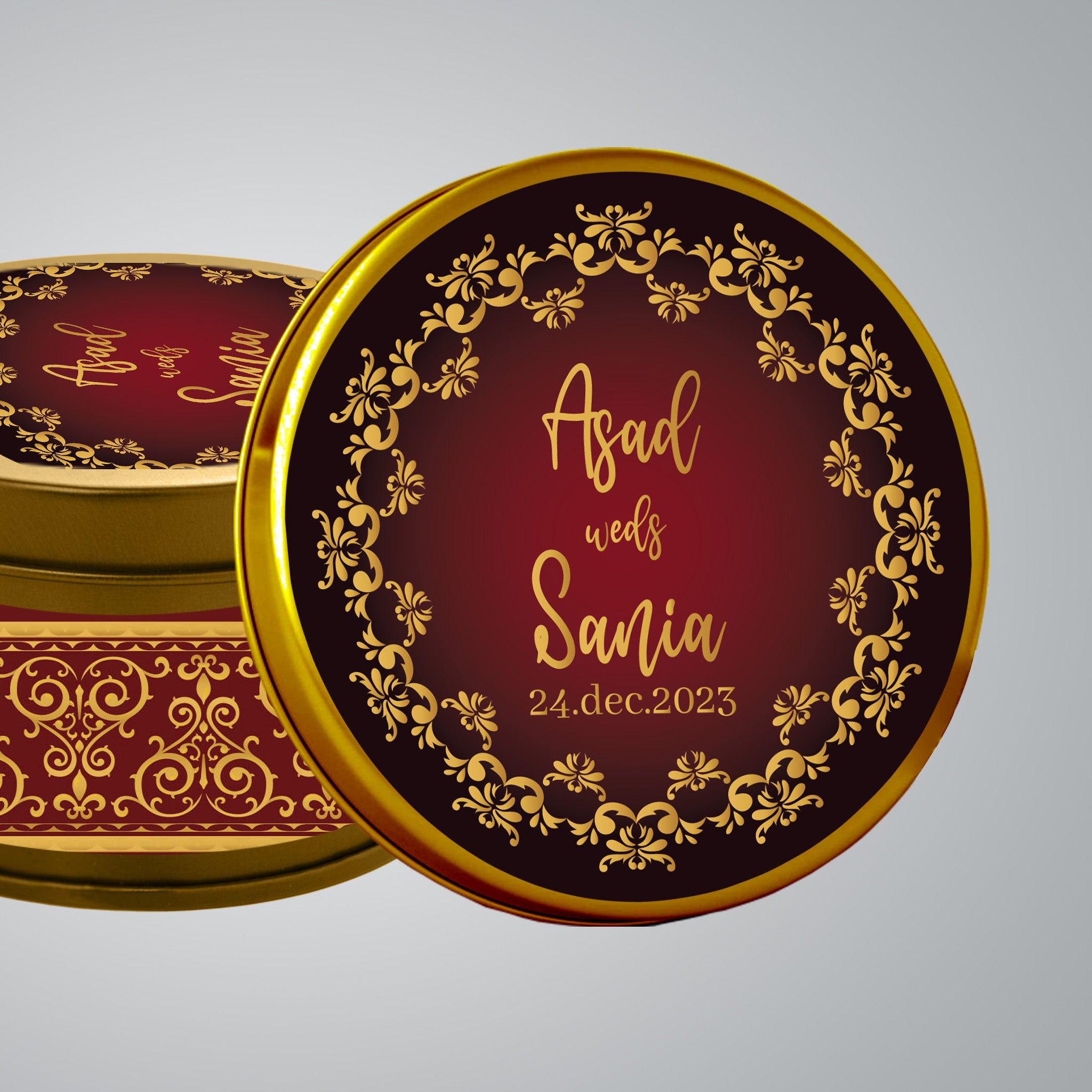 • Biggest collection of Personalized Tin Bid Boxes for Nikkah, Engagement & Weddings