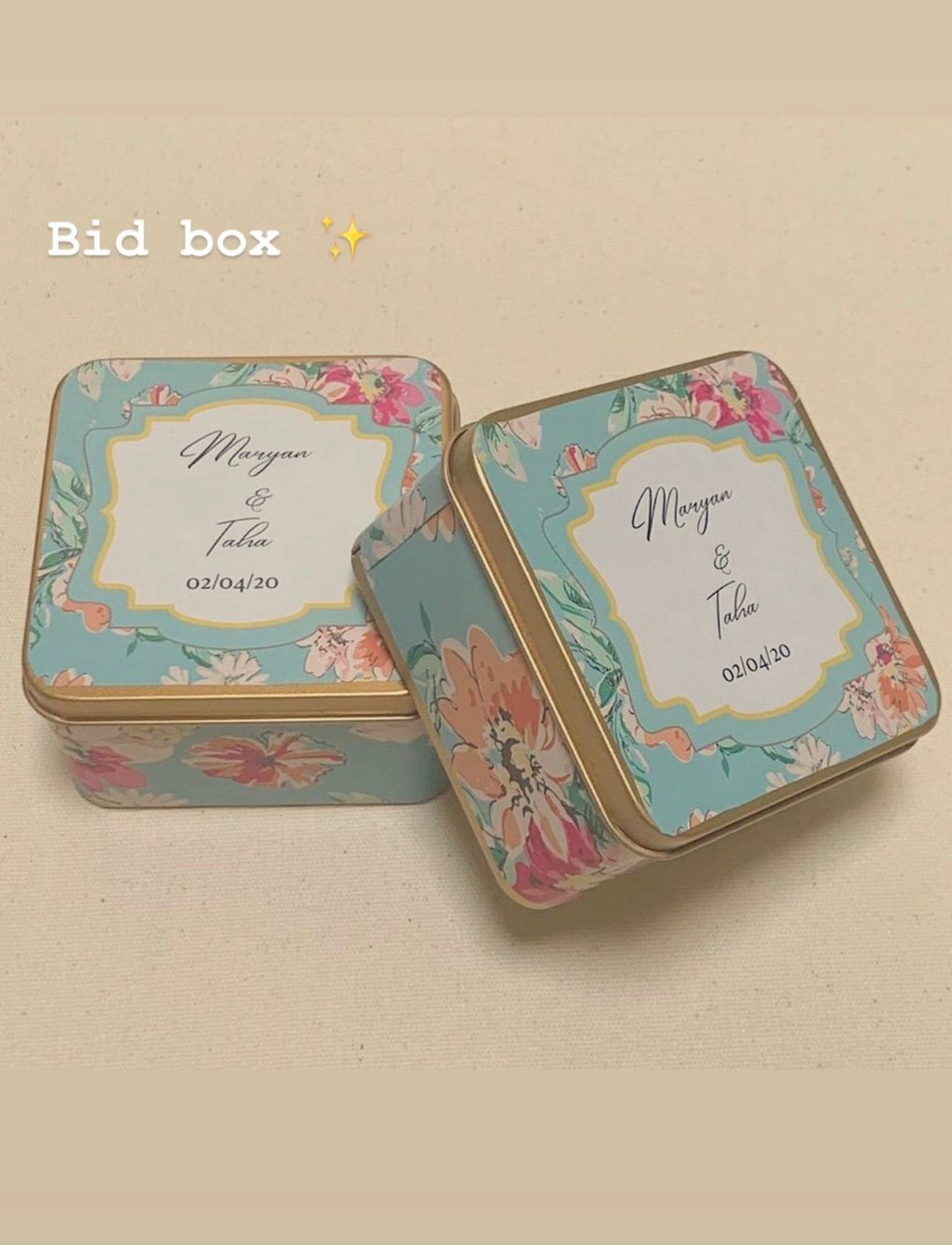 • Biggest collection of Personalized Tin Bid Boxes for Nikkah, Engagement & Weddings