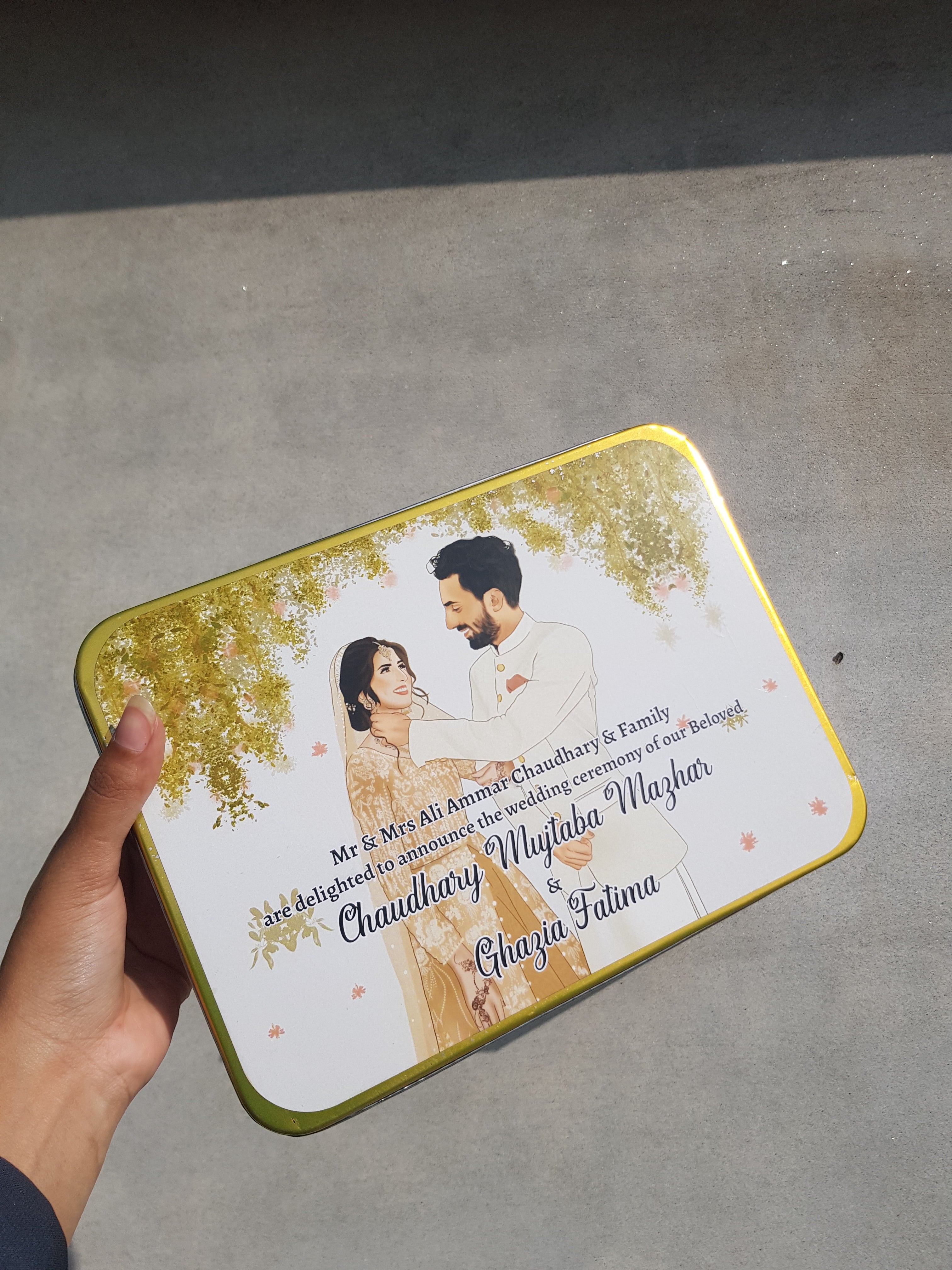 • Biggest collection of Personalized Tin Bid Boxes for Nikkah, Engagement & Weddings