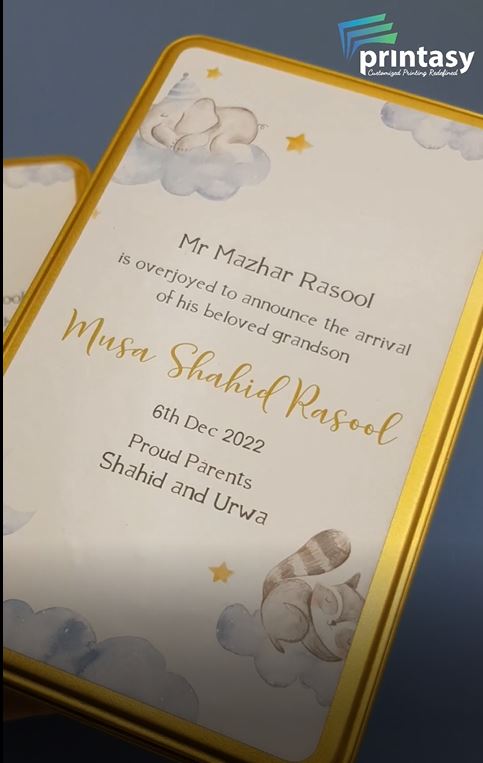 Premium Birth Announcement Tin Boxes – Custom Printed Baby Arrival Gifts & Methie Boxes in Pakistan