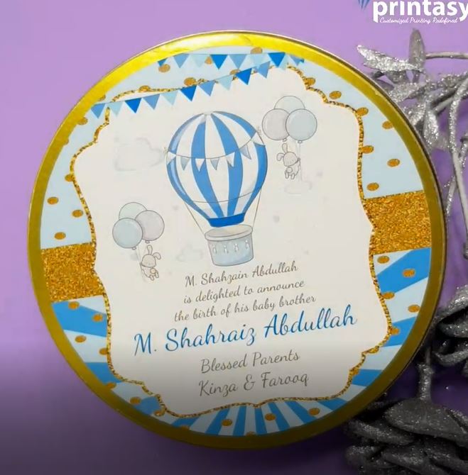 Premium Birth Announcement Tin Boxes – Custom Printed Baby Arrival Gifts & Methie Boxes in Pakistan