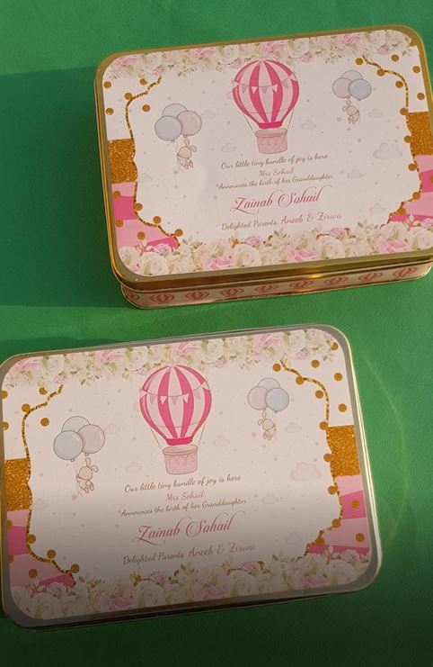 Premium Birth Announcement Tin Boxes – Custom Printed Baby Arrival Gifts & Methie Boxes in Pakistan