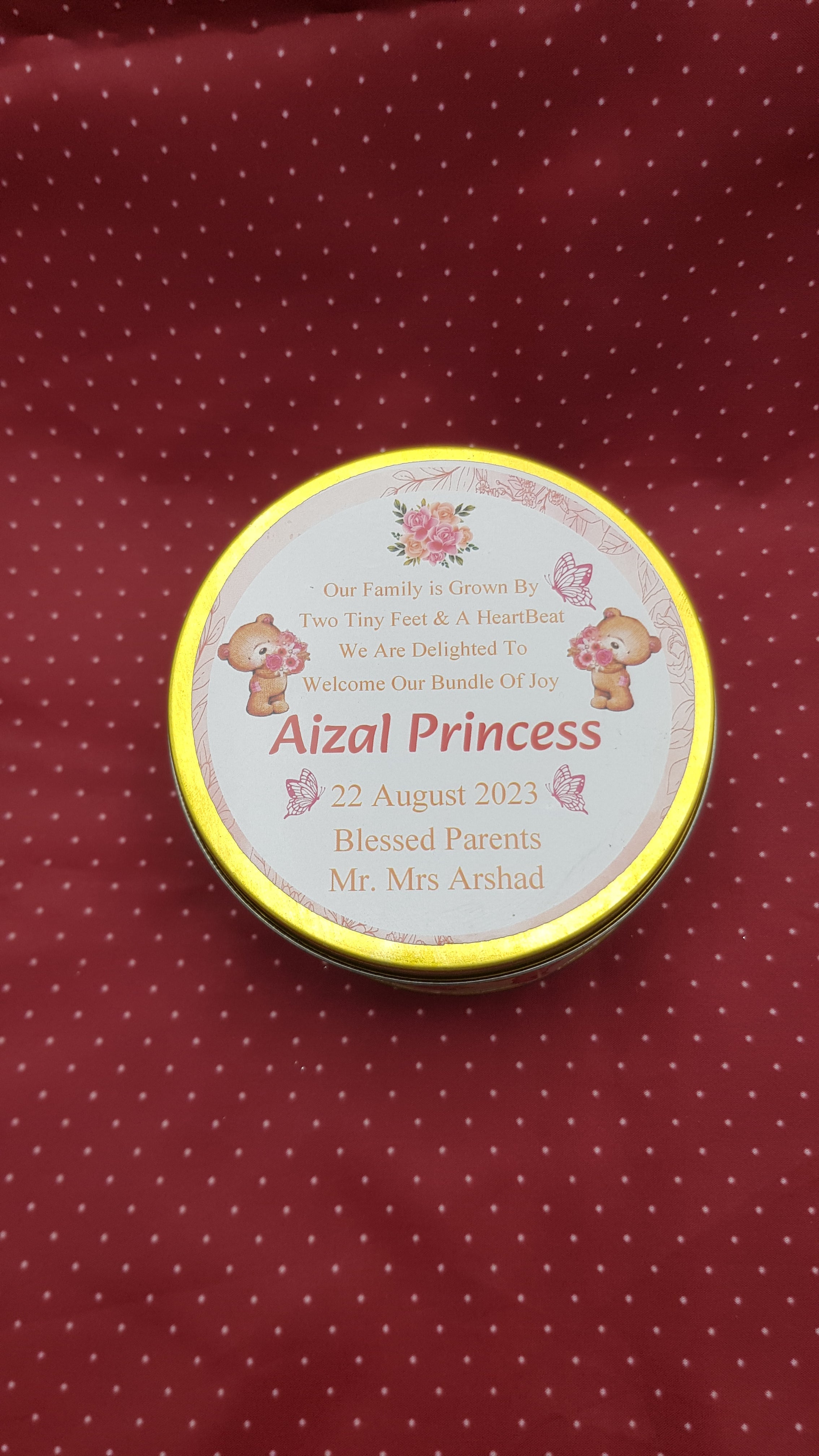 Premium Birth Announcement Tin Boxes – Custom Printed Baby Arrival Gifts & Methie Boxes in Pakistan